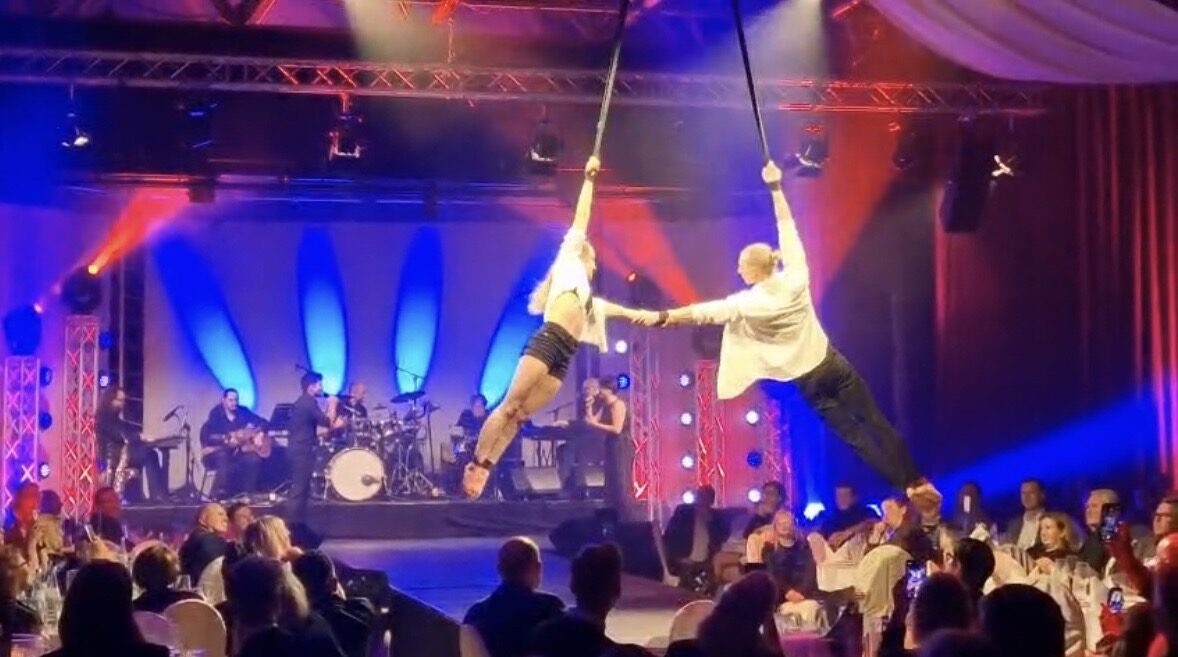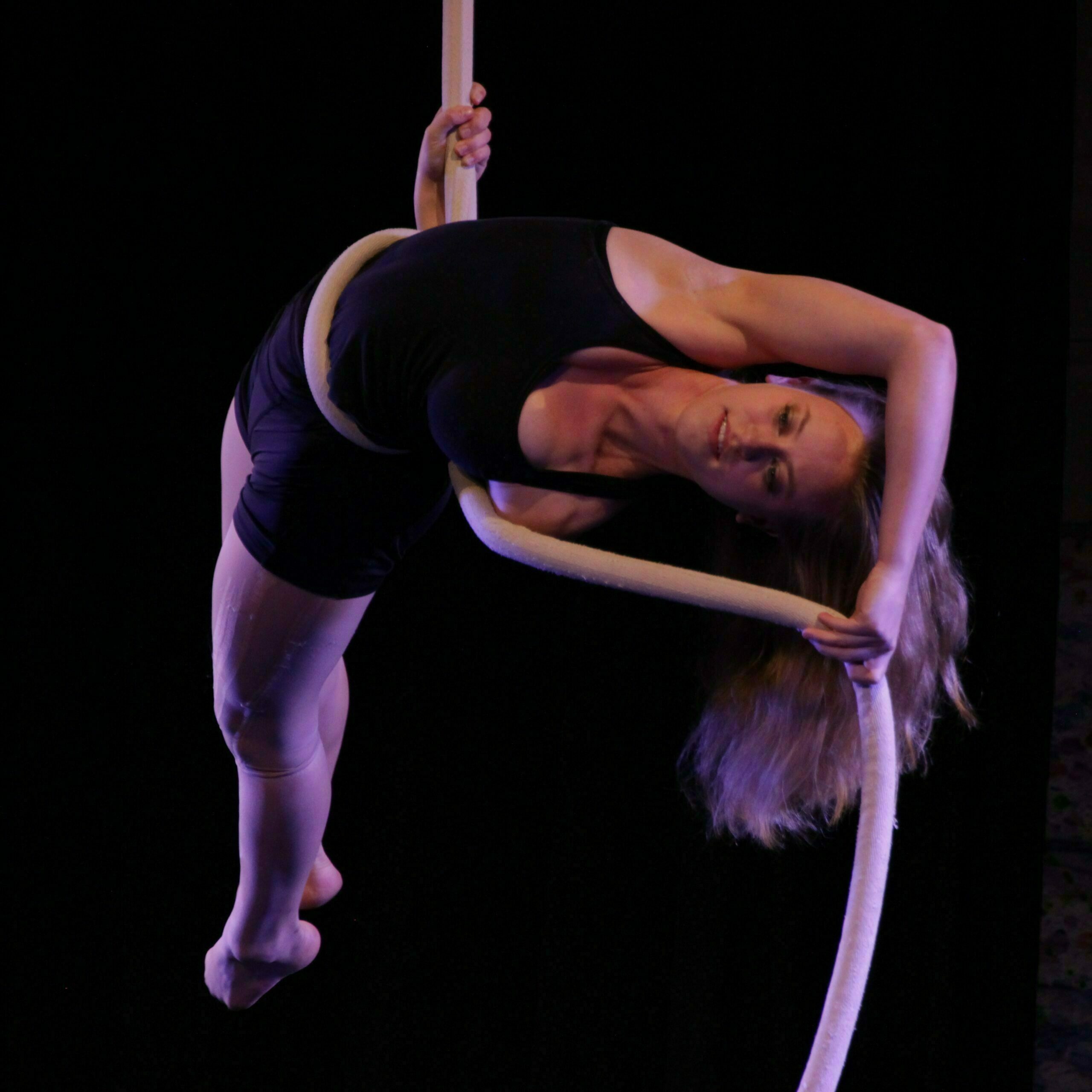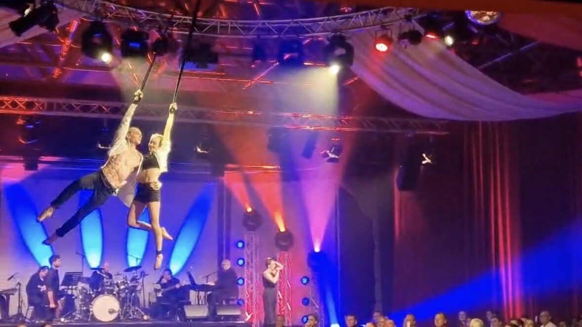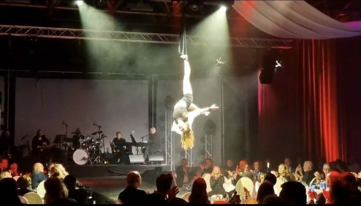 In diesen virtuosen Luftartistik – Darbietungen geht es hoch hinaus. Kraftvoll und elegant fliegt die Künstlerin über die Bühne und über die Köpfe des Publikums. Mit scheinbarer Leichtigkeit vereint sie beeindruckende Dynamik und präzise Kontrolle, während atemberaubende Drehungen, schockierende Abfaller und fließende Bewegungen die Schwerkraft außer Kraft setzen. Erleben Sie ein harmonisches Zusammenspiel aus Körperbeherrschung und künstlerischer Ausdruckskraft. Von gefühlvoll-poetischer Musik untermalt, am Vertikalseil, am Tuch oder an den Strapaten, lädt Sie eine Performance ein zu staunen und zu träumen.